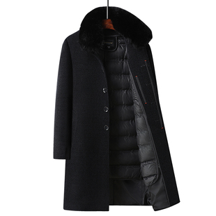 雪尼尔男士 秋冬外套 大衣外套加绒加厚保暖可拆卸内胆中老年长款