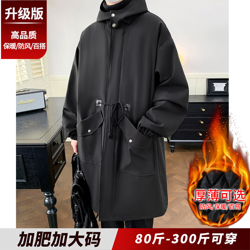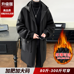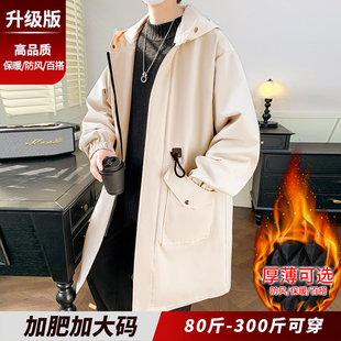 加棉加厚风衣外套棉服男秋冬防风保暖中长款 棉衣胖子宽松加肥加大