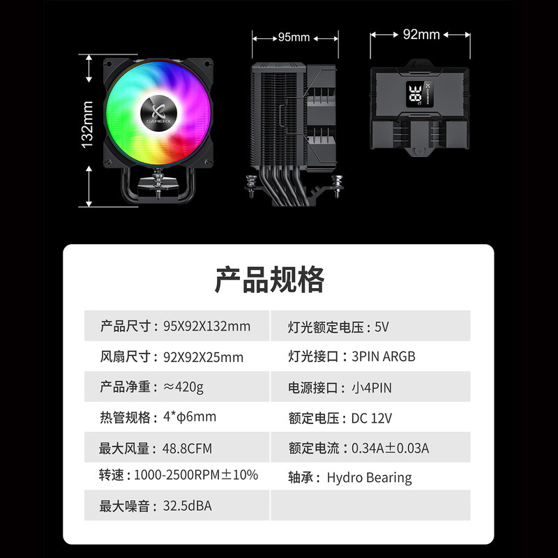 未知玩家Z1300数显散热器CPU风扇ARGB静音四铜管1700电脑塔式 风冷
