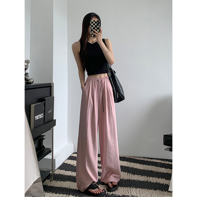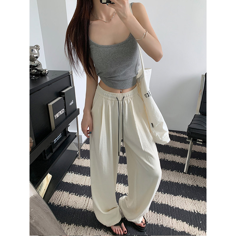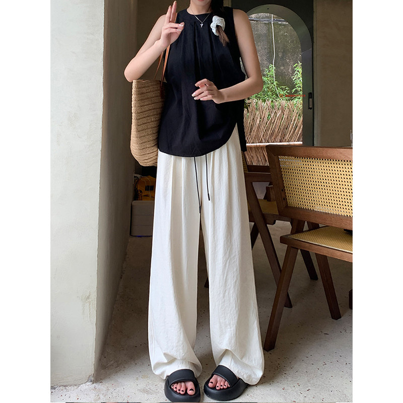直筒抽绳奶芙裤 白色冰丝阔腿裤 女夏高腰垂感宽松防晒小个子山本裤