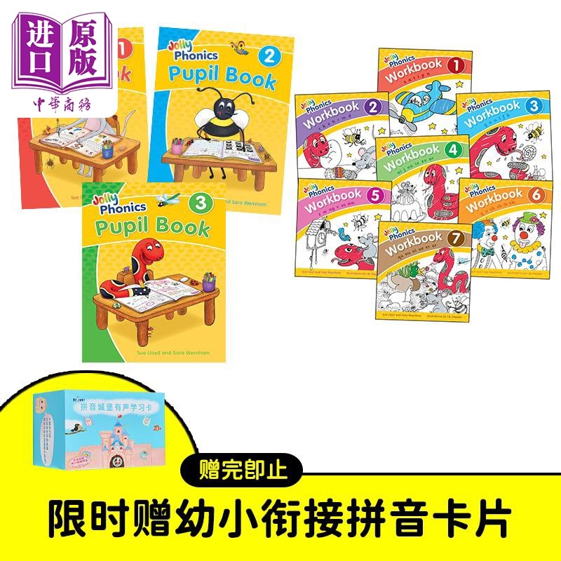 英式 英语手写体小全套 中商原版 Phonics 限时赠送幼小衔接拼音卡片 欢乐自然拼读 练习册7册 Jolly 学生书3册