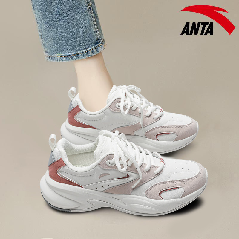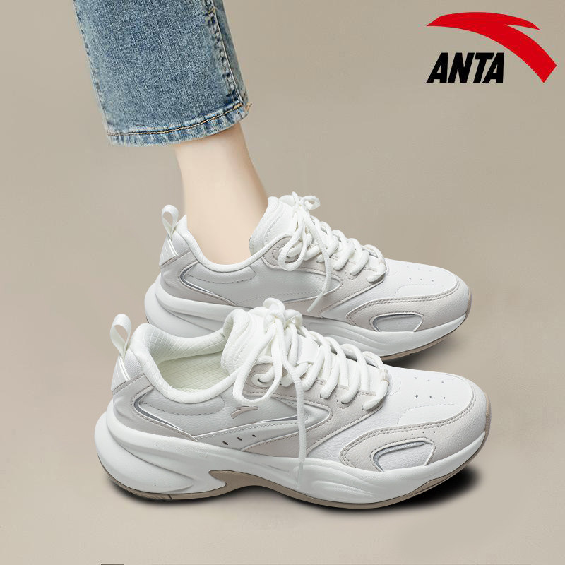 女白色ACE老爹鞋 厚底运动鞋 秋季 复古轻便正品 新款 安踏皮面休闲鞋