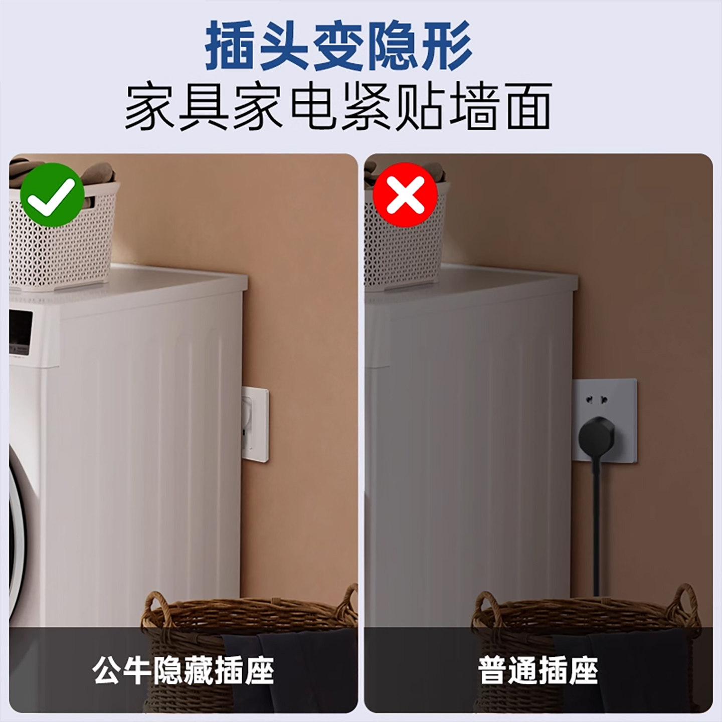 公牛插座隐藏插座嵌入式 插座冰箱五孔86型面板 隐形插座内凹内嵌式