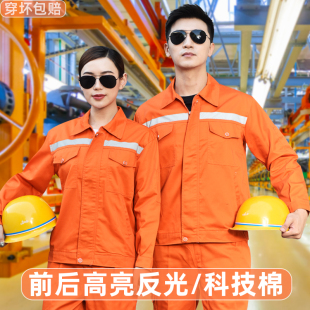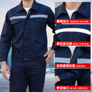 套装 反光条工作服男装 车间工程耐磨劳保服上衣定制工衣 长袖 春秋季