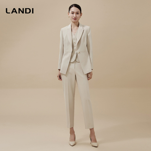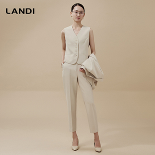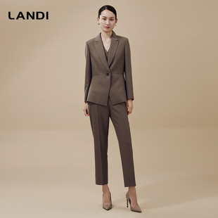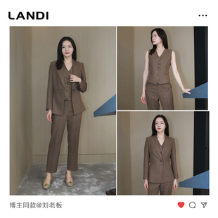 外套女西裤 LANDI茶咖色西装 马甲三件套冬新品 老钱风叠穿套装