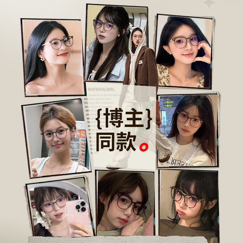 普莱斯冷茶色防蓝光眼镜女抗疲劳辐射变色素颜无度数护眼镜框架男