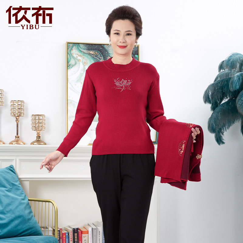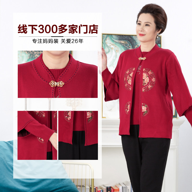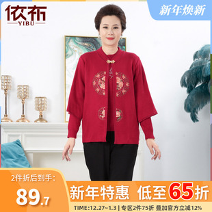 大码 依佈中老年女士两件套针织衫 开衫 高贵妈妈装 礼服上衣 2025秋装