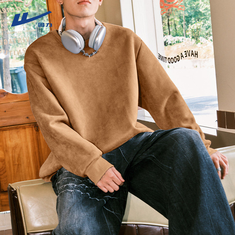 男士 新款 冬季 绵羊毛混纺卫衣磨毛圆领简约百搭纯色 绵羊毛卫衣