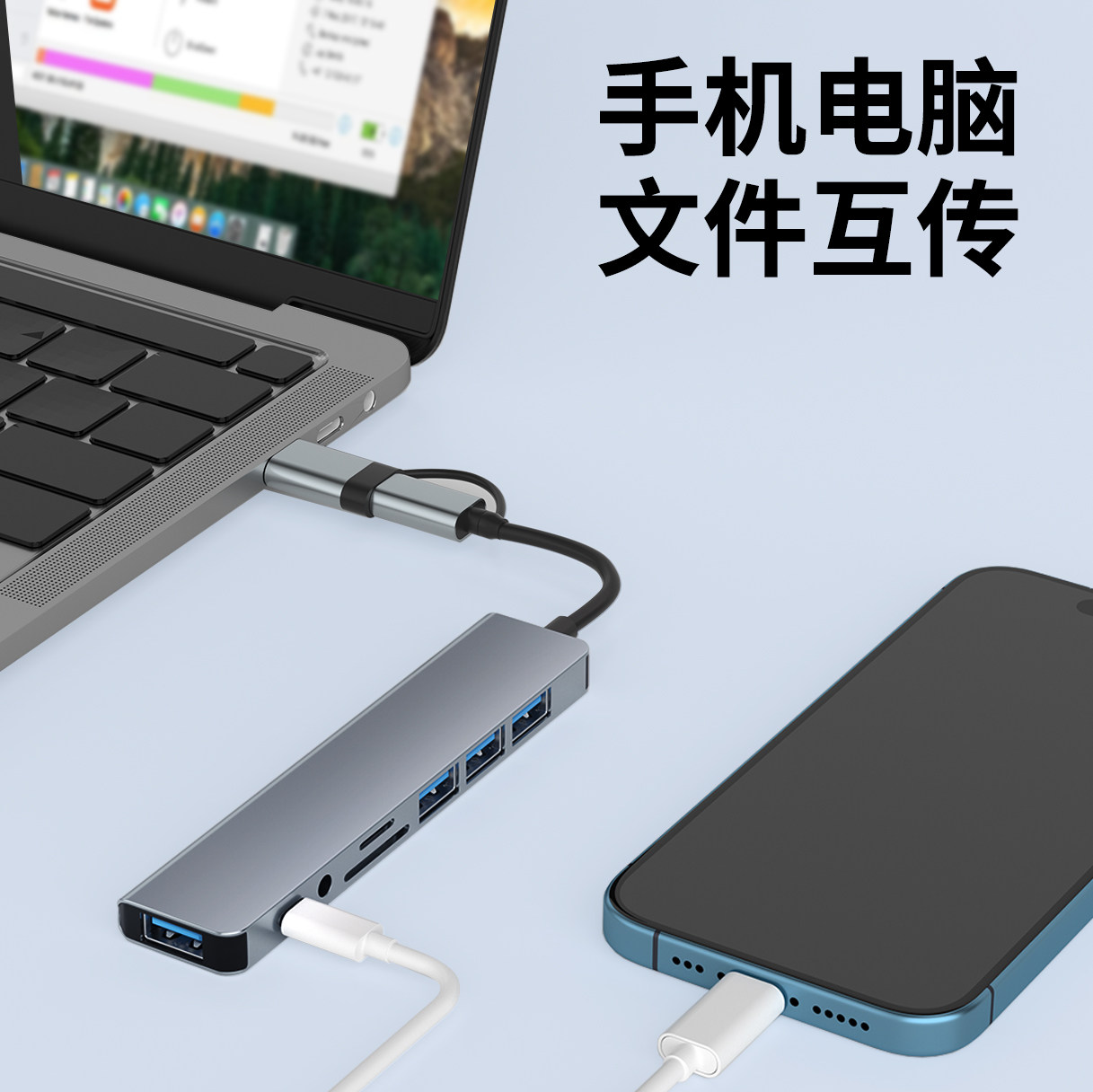 typec扩展坞适用苹果华为手机笔记本ipad平板电脑USB3.0拓展器U盘鼠标键盘硬盘3.5mm耳机TF存储卡SD分线器pro
