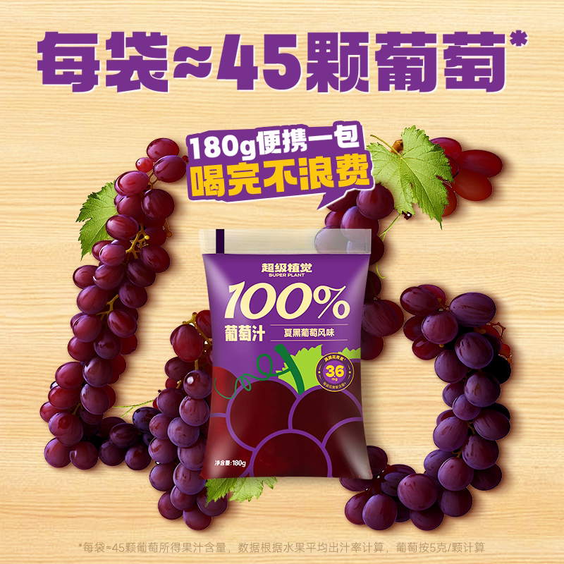 180g健康 100%葡萄汁夏黑蔬果汁便携袋装 超级植觉官方旗舰