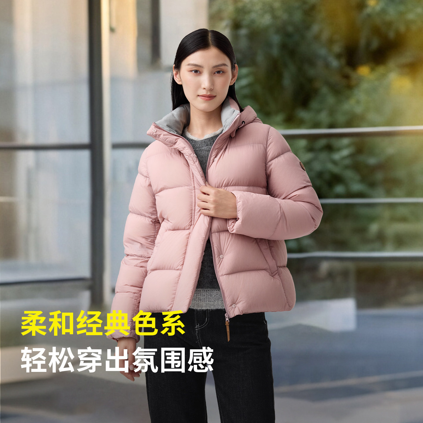 上衣小个子外套 加厚保暖白鸭绒短款 NOB真维斯连帽羽绒服女装 冬季