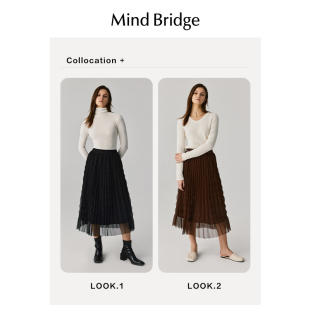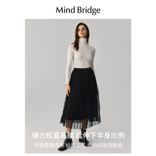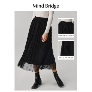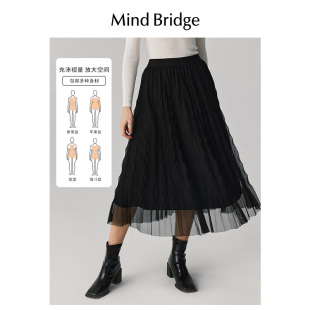 半身裙网纱裙子 复古纯色百褶裙女士中长款 Mind Bridge2026年春季