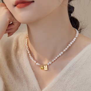 赛赛莉安Goodluck幸运许愿牌爱心巴洛克淡水珍珠项链小众设计礼物