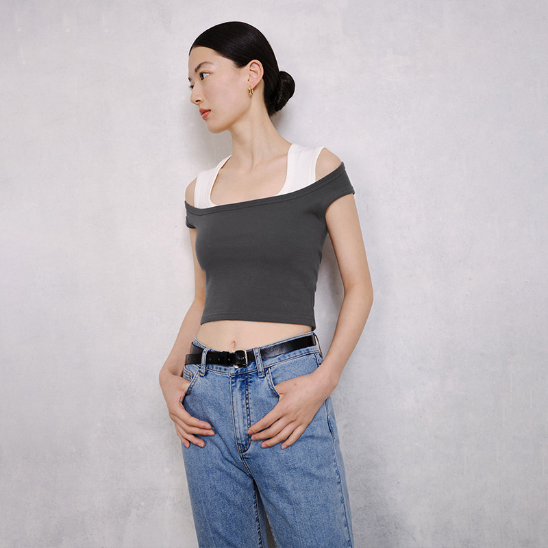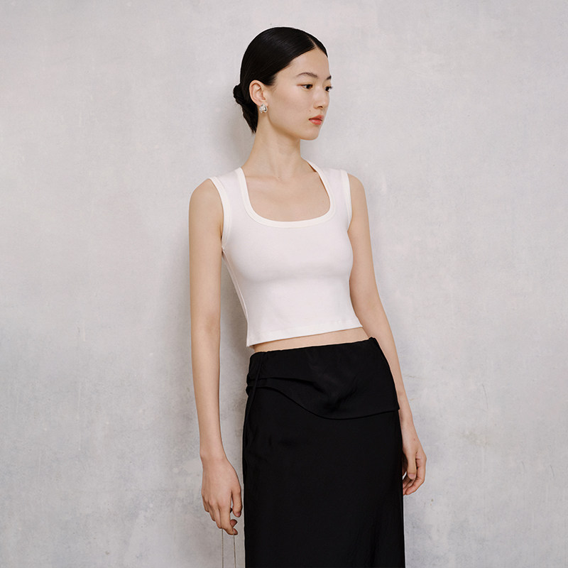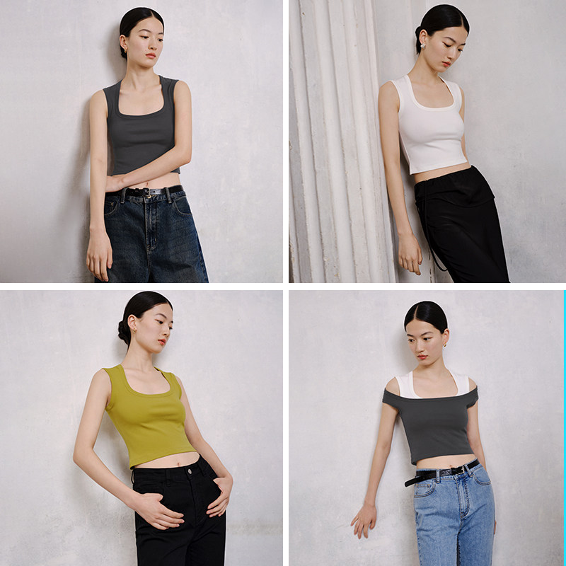 BLUEWEDIAN法式 小方领露脐背心百搭纯色吊带上衣女夏