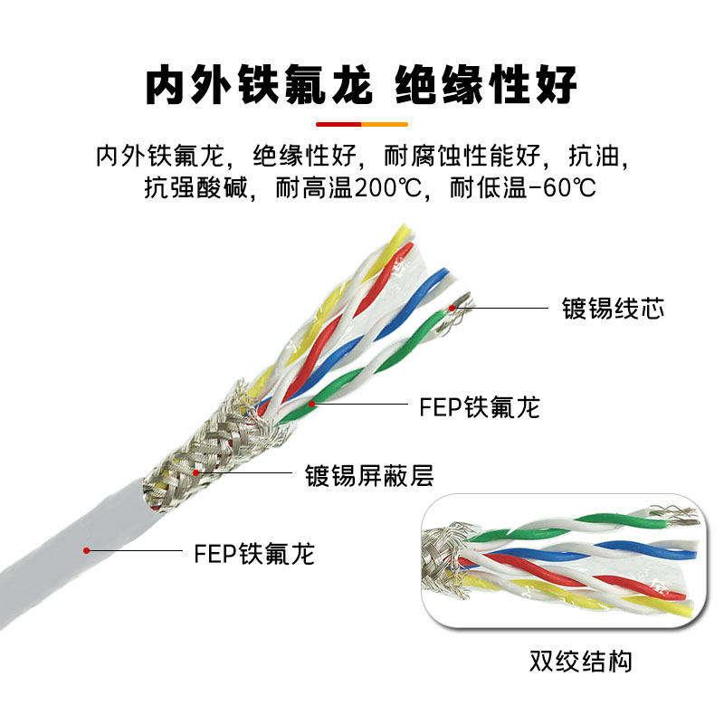 8芯0.12 2.5平方对绞屏蔽线 KFFSP镀锡高温双绞线4 铁氟龙AFSPF