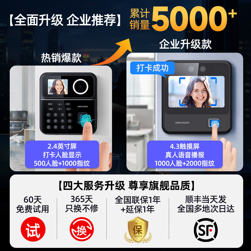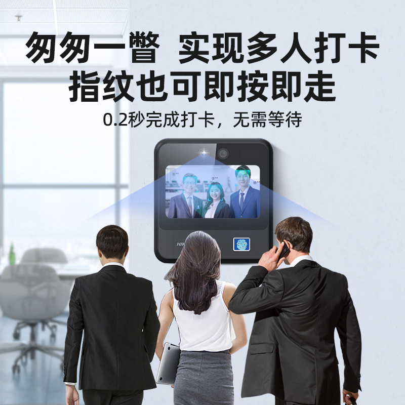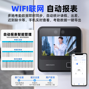 海康威视人脸识别指纹打卡机公司员工上下班面部考勤机工地刷脸签到器多功能智能WIFI联网云考勤