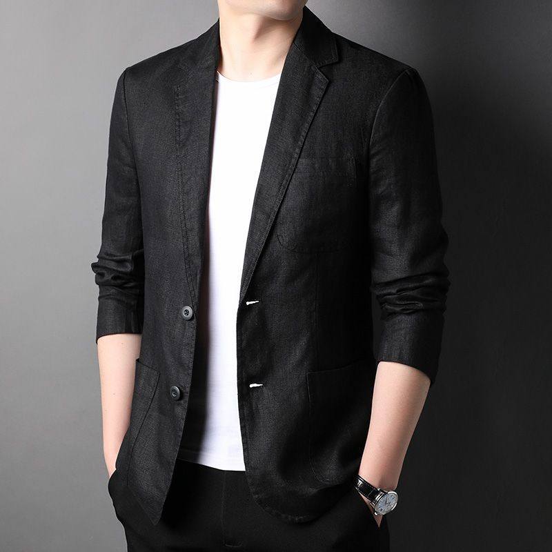 ELI 真丝羊毛混纺平驳领釉面牛角扣休闲西服外套男春秋 杜松