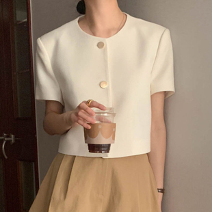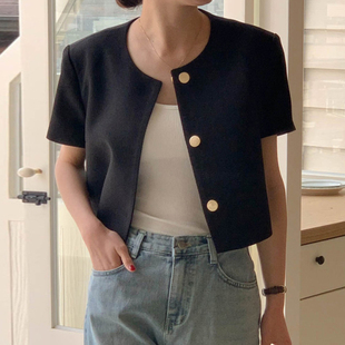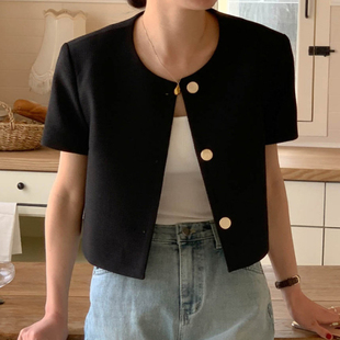 外套女 短款 韩国chic夏季 气质小香风圆领单排扣宽松休闲百搭泡泡袖