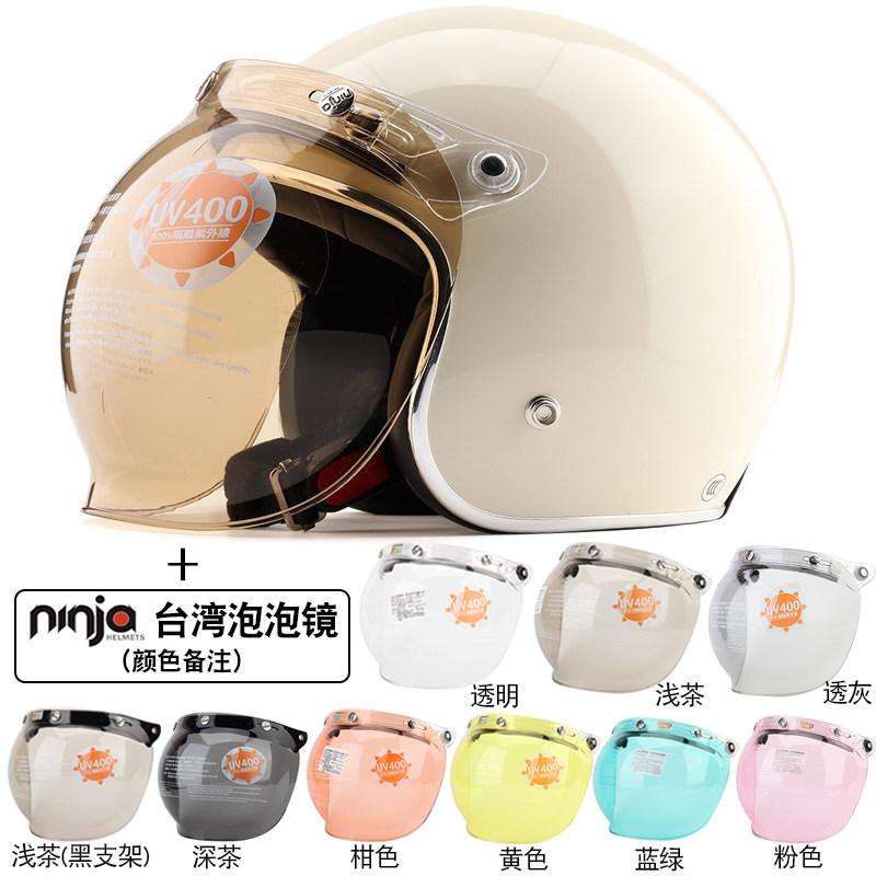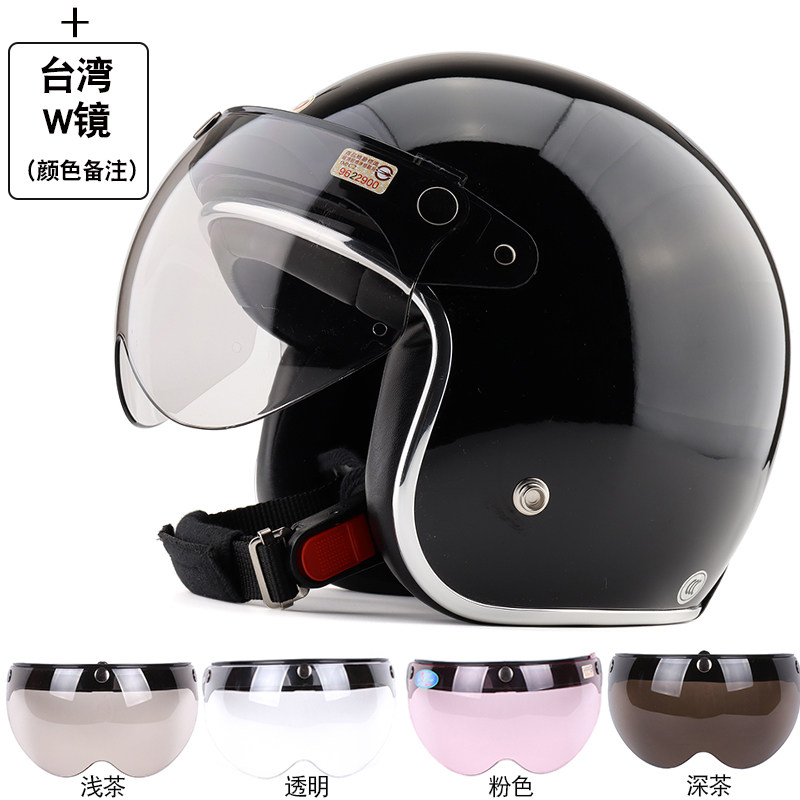 台湾EVO精装 黑边纯色复古电动摩托车头盔成人男女安全帽保暖冬季