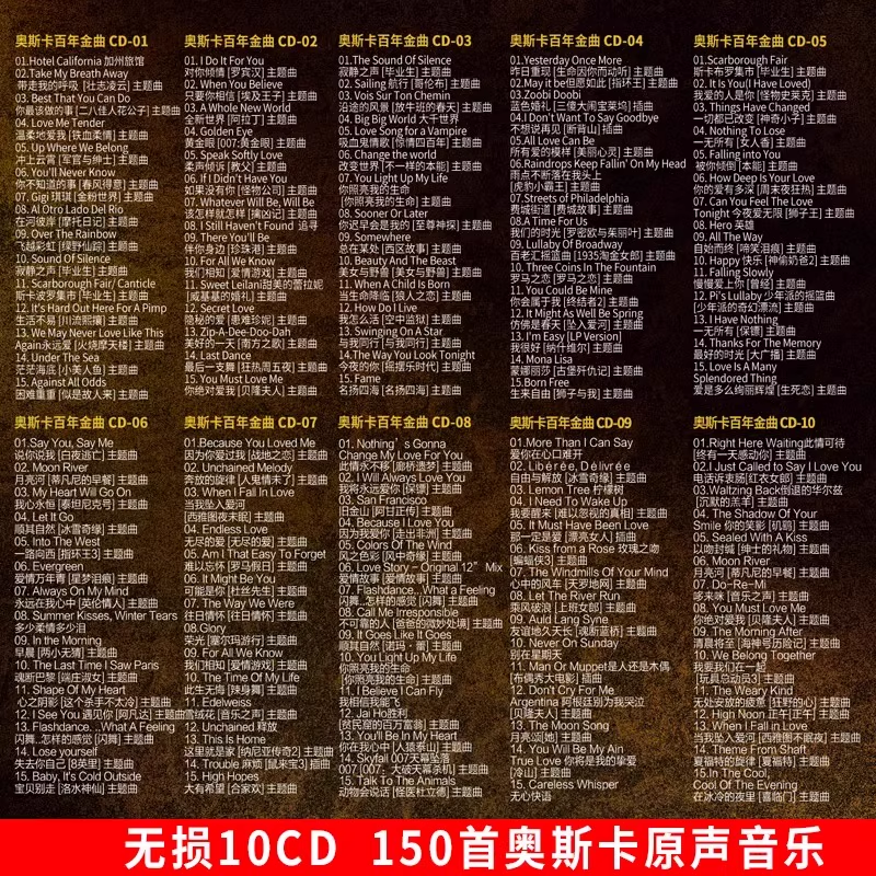 正品 金曲英文歌曲无损高音质车载cd碟片 百年奥斯卡欧美怀旧经典