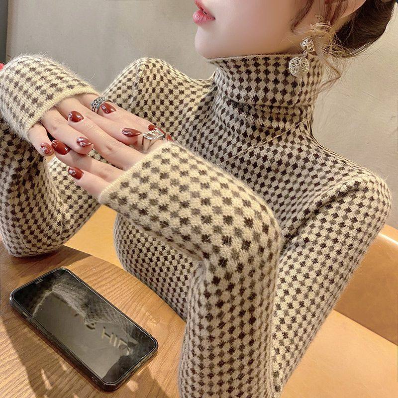 针织加绒保暖上衣 内搭毛衣洋气2025年新款 半高领打底衫 女士秋冬季