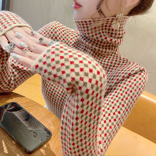 针织打底衫 品牌高级感羊毛衫 女半高领宽松毛衣秋冬加厚羊绒长袖