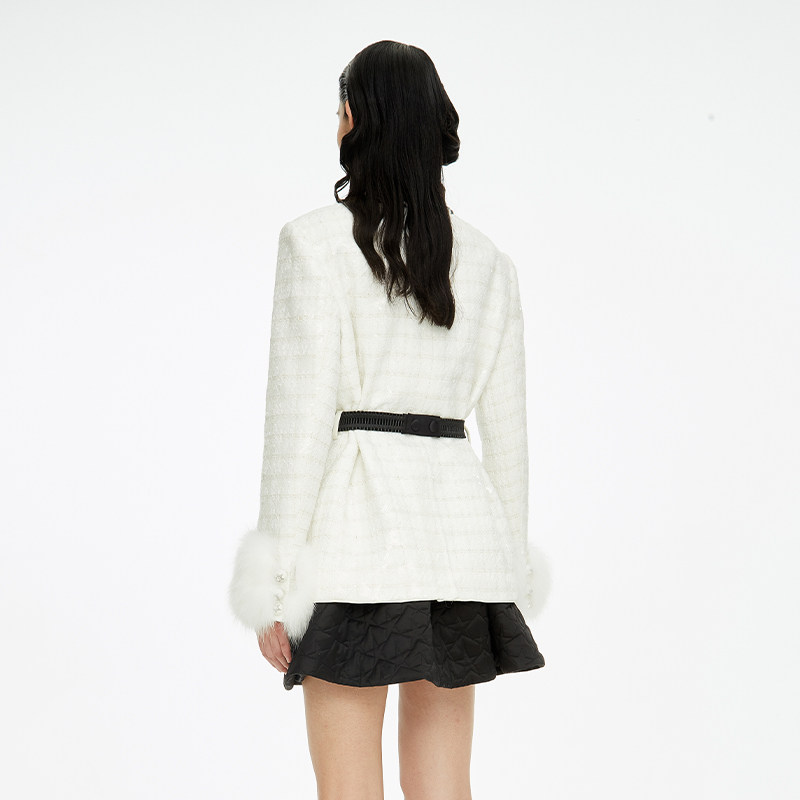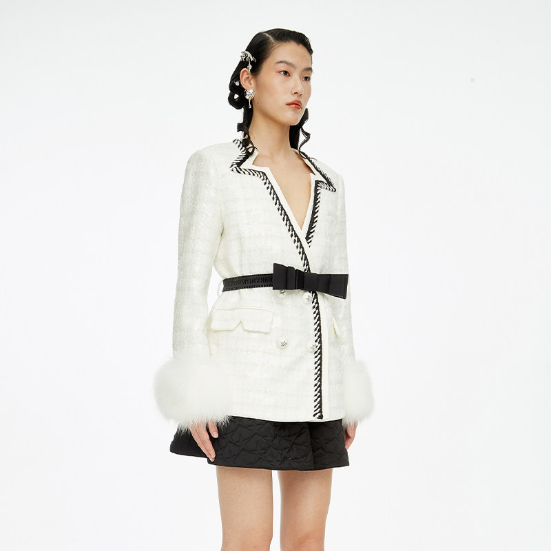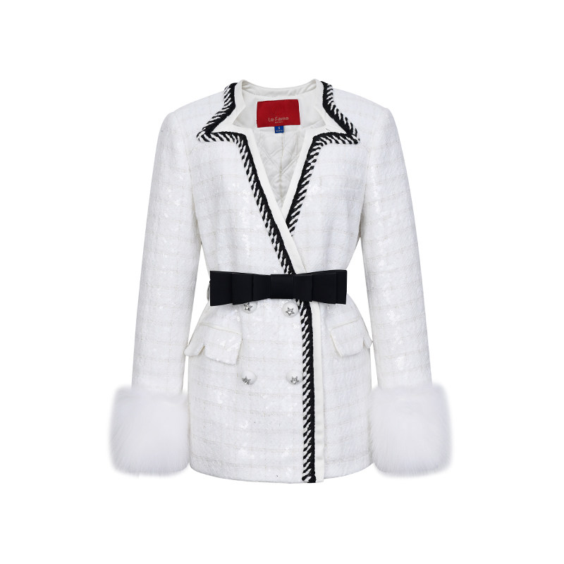 lefame拉飞姆华丽五角星珠片不规则领口呢外套