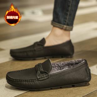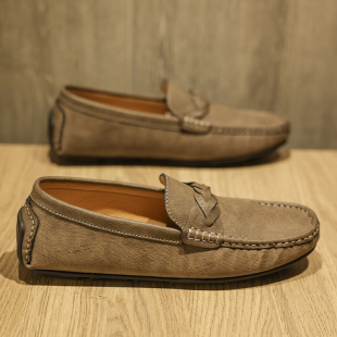 新款 2026年春季 一脚蹬懒人皮鞋 商务休闲鞋 豆豆鞋 真皮软底潮鞋 男款