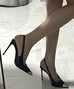 大象灰漆皮百搭高跟鞋 rv方扣粗跟单鞋 女鞋 新款 方头浅口 女2025春季