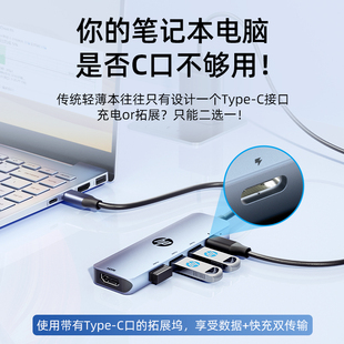 HP惠普拓展坞typec扩展hdmi投屏转换usb分线器hub集线器网线多功能接口转接头笔记本电脑iPad平板手机配件