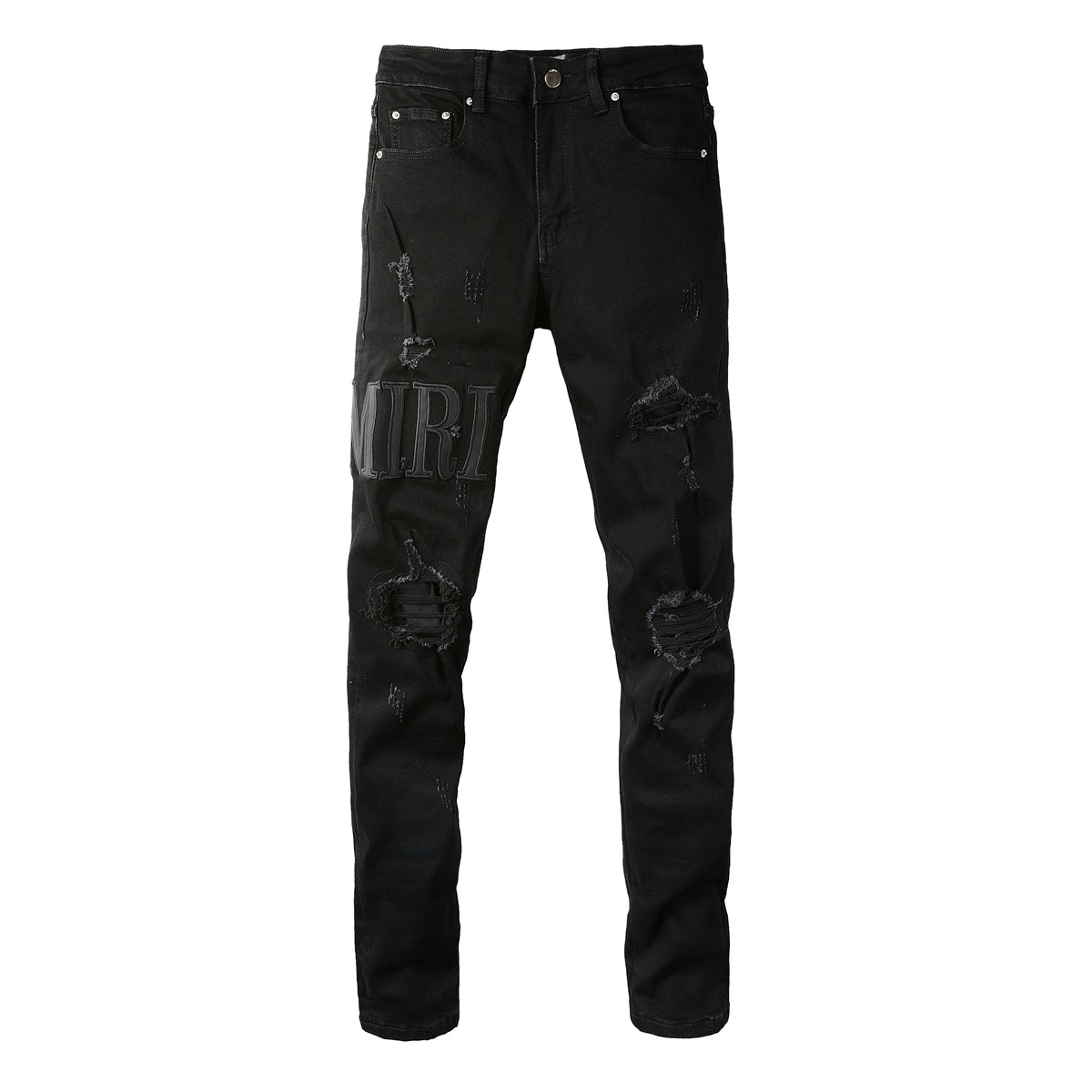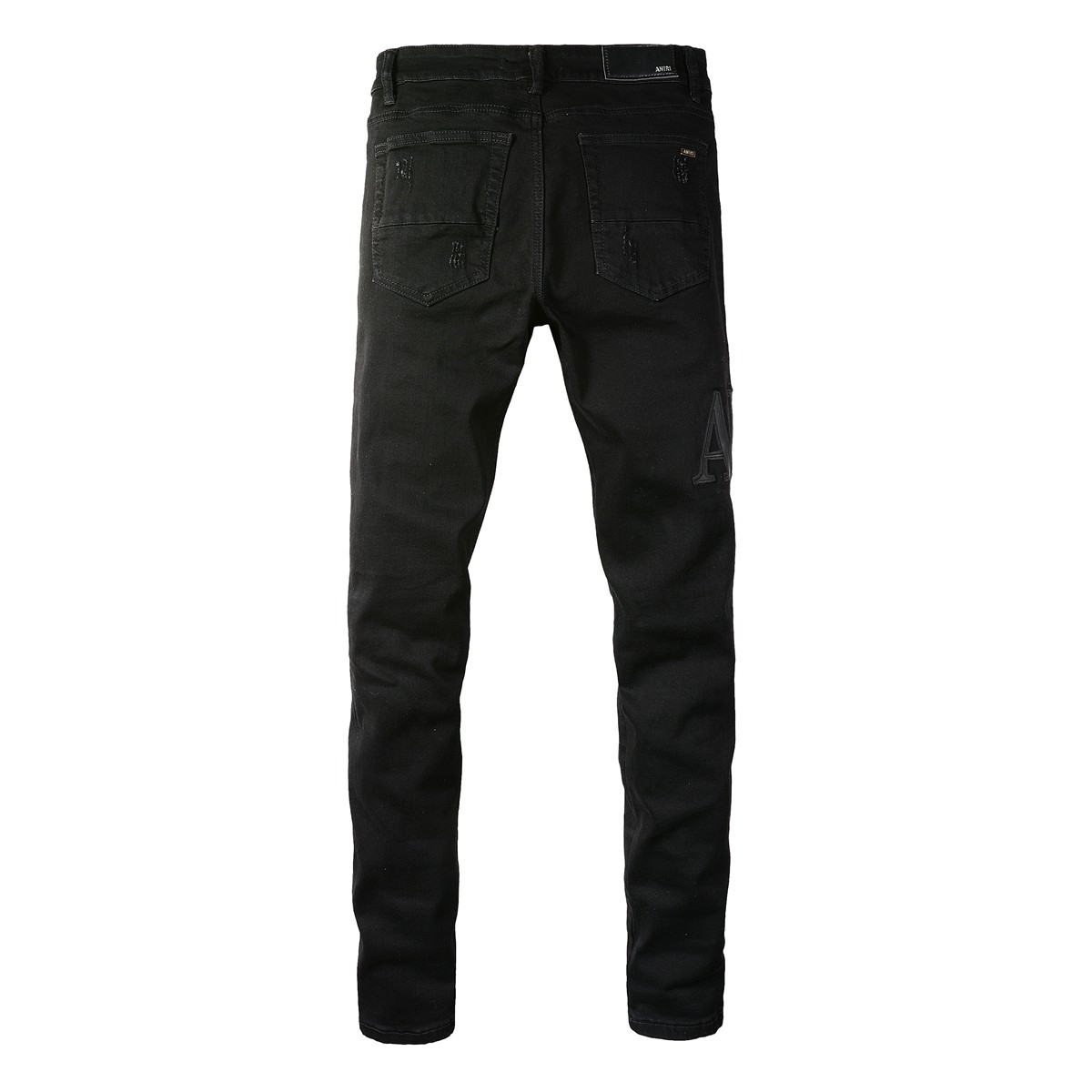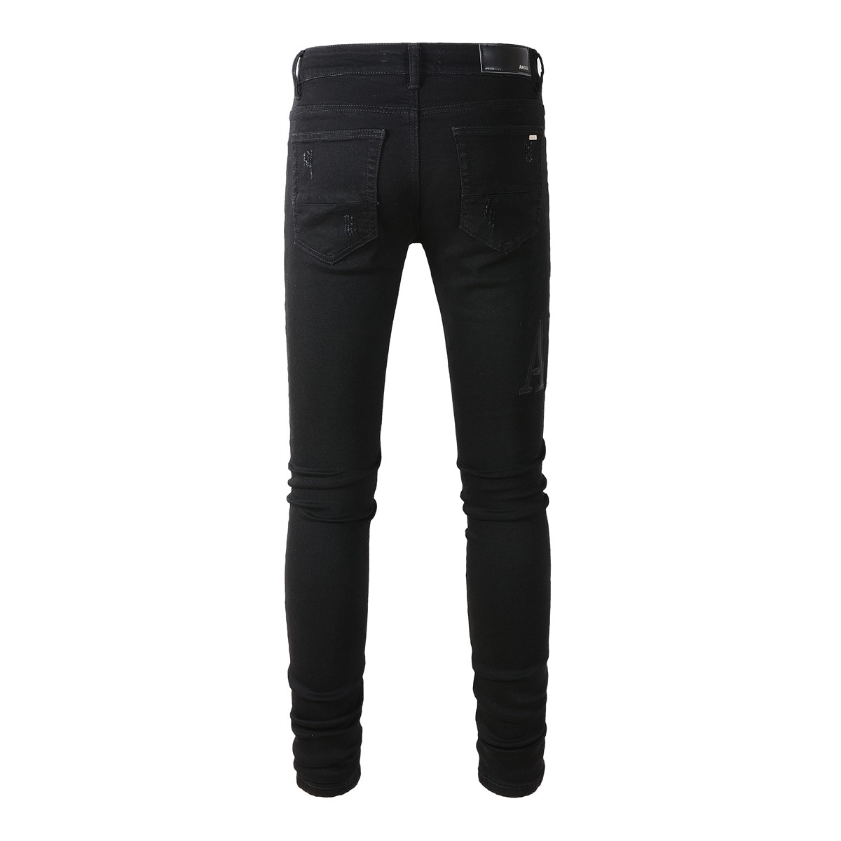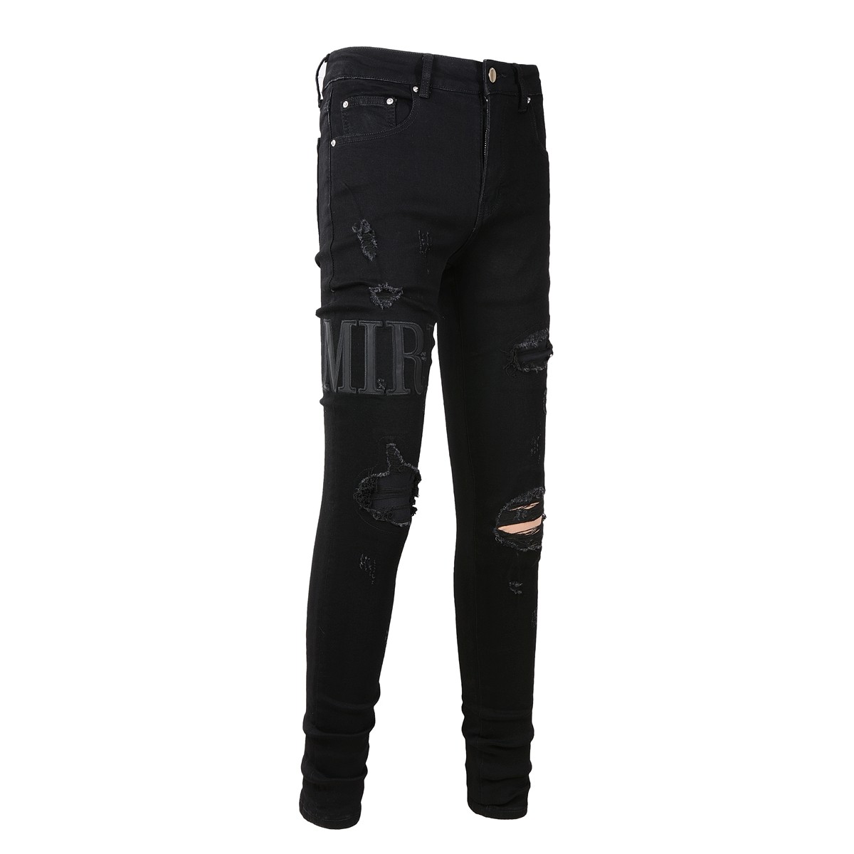 小脚裤 高街潮牌AMR春季 LOGO贴布弹力修身 黑色膝盖破洞牛仔裤 新款