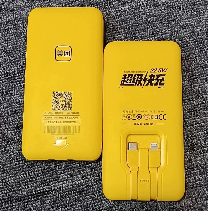 美团怪兽全新共享充电宝自带三线商场同款 超轻薄家用买断快充有3C