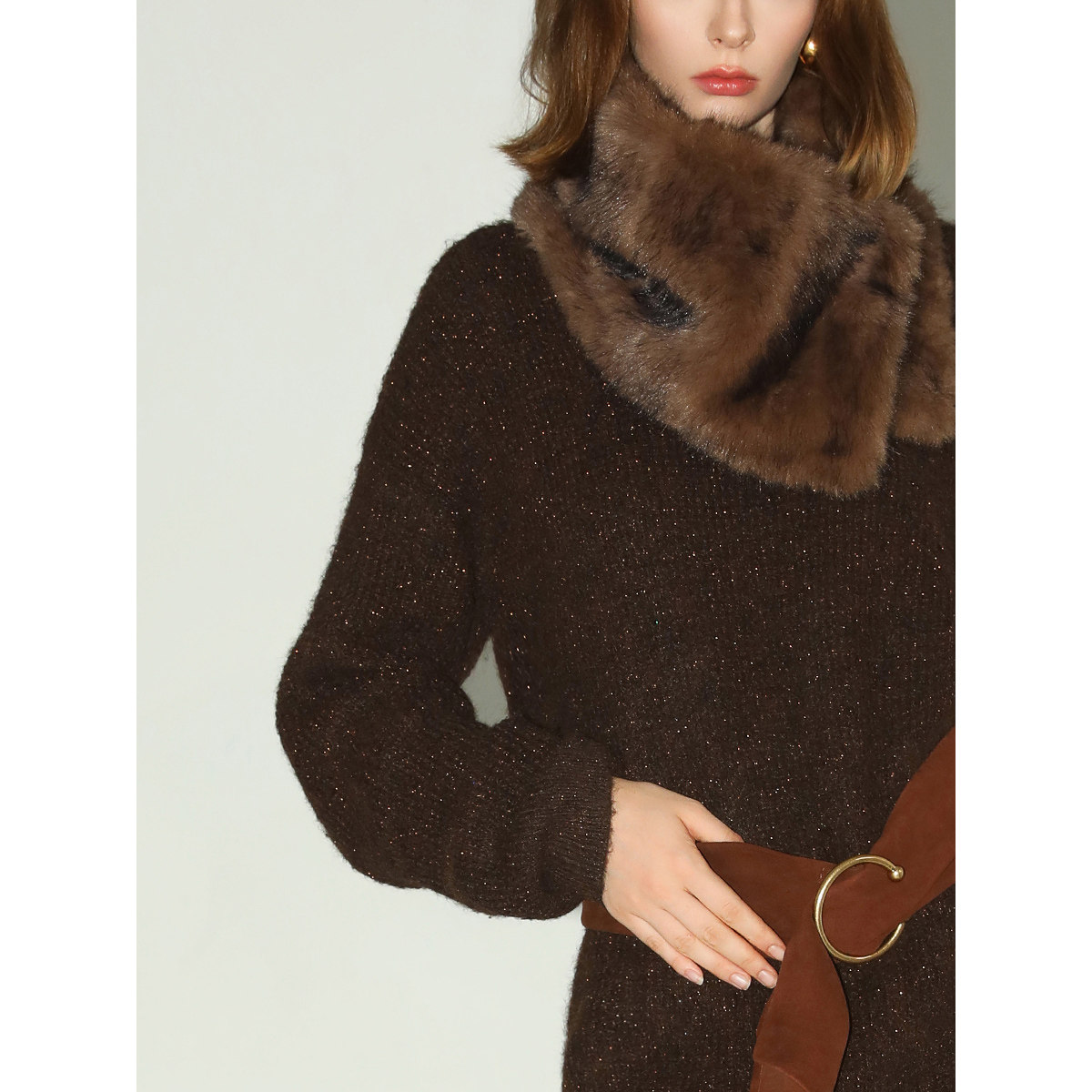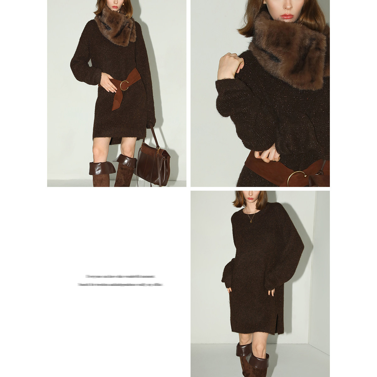 COCOBELLA美拉德细闪金葱毛衣裙冬软糯中长款 针织连衣裙MZ3092