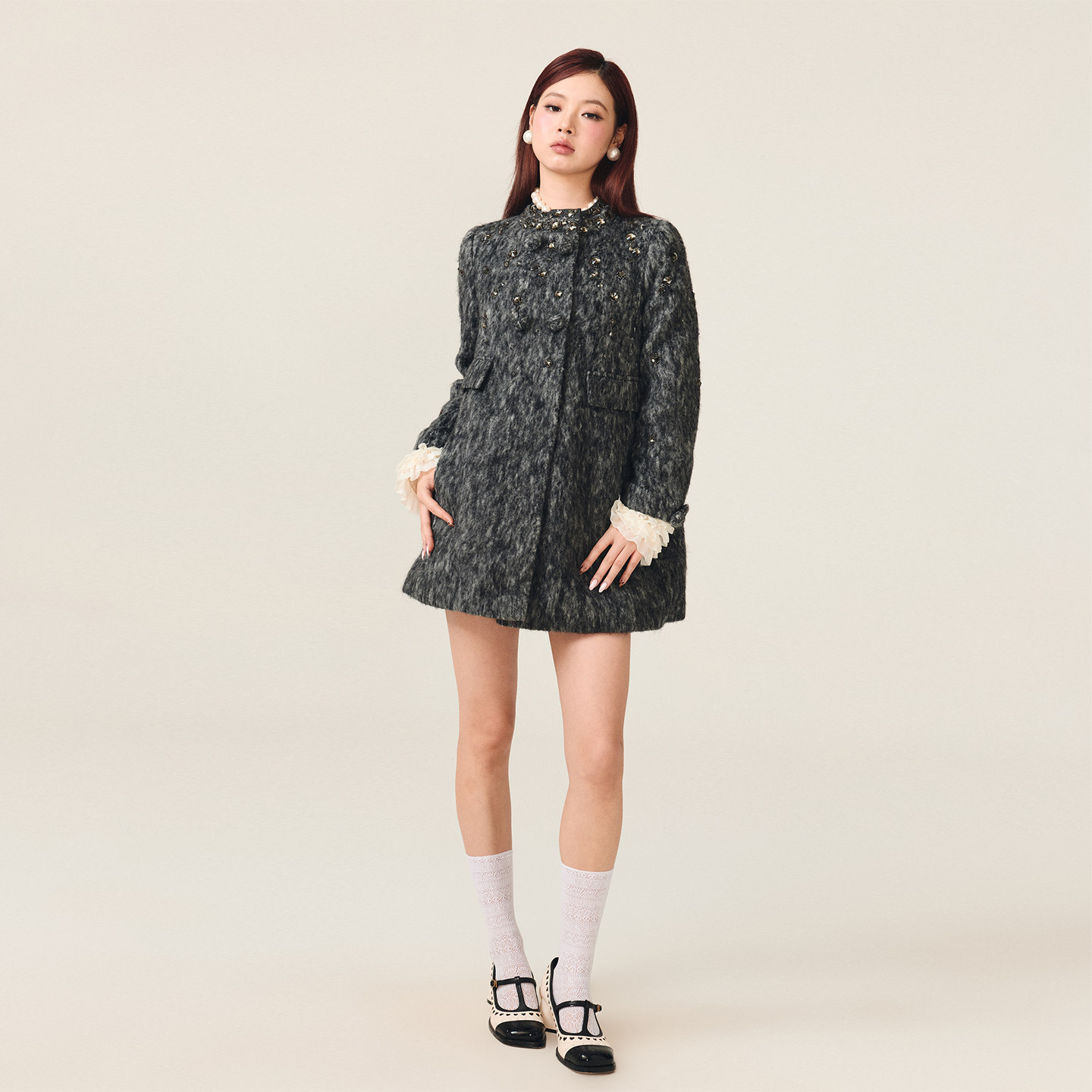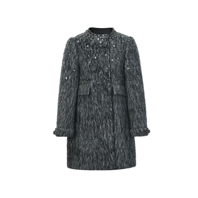 慵懒风双面羊毛大衣女中长款 灰色毛呢外套高级感