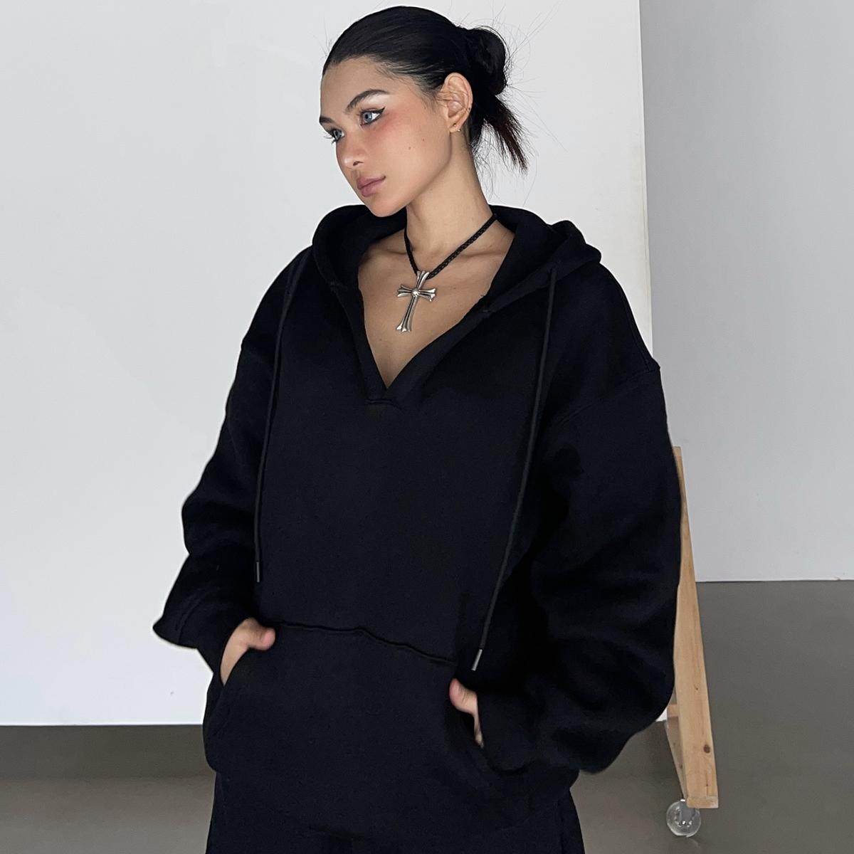 宽松慵懒帽衫 超保暖独特V领 ·3色 540g厚绒·绒化寒冷 ICVIBE