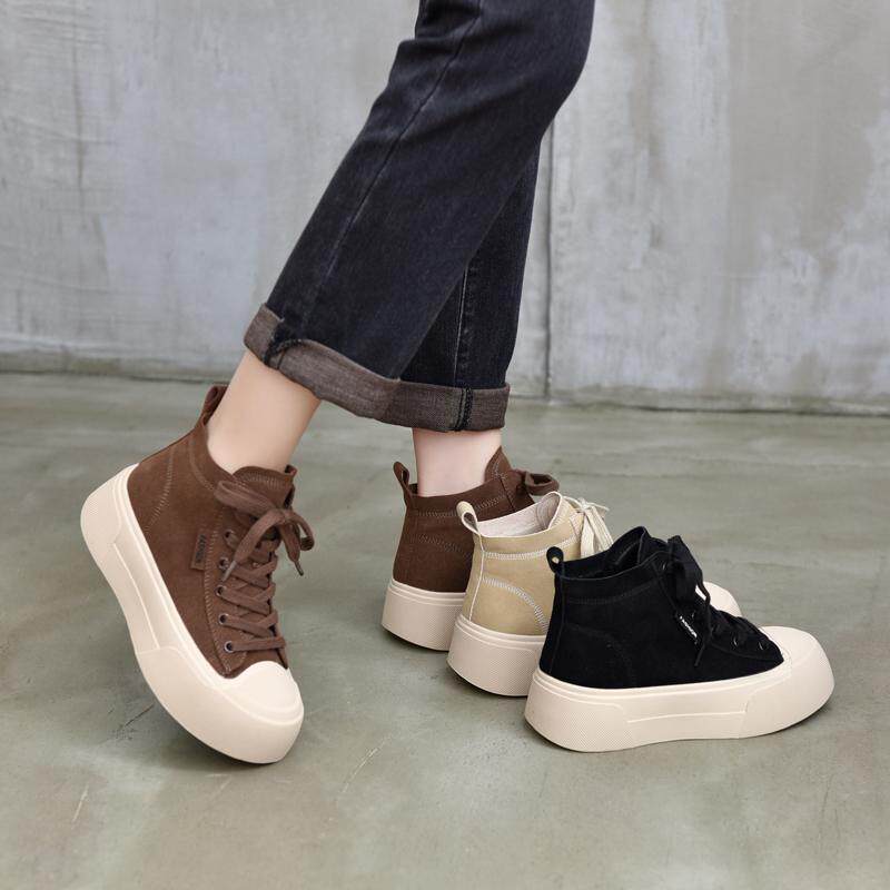 休闲鞋 真皮松糕厚底百搭学生小众时尚 女2025秋冬新款 高帮板鞋