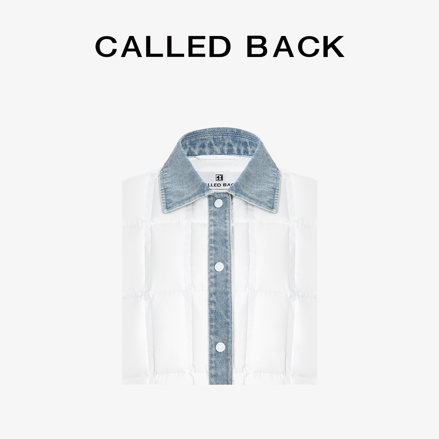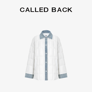 BACK拼接牛仔假两件白鸭绒羽绒服外套女冬 CALLED 陈卓璇同款