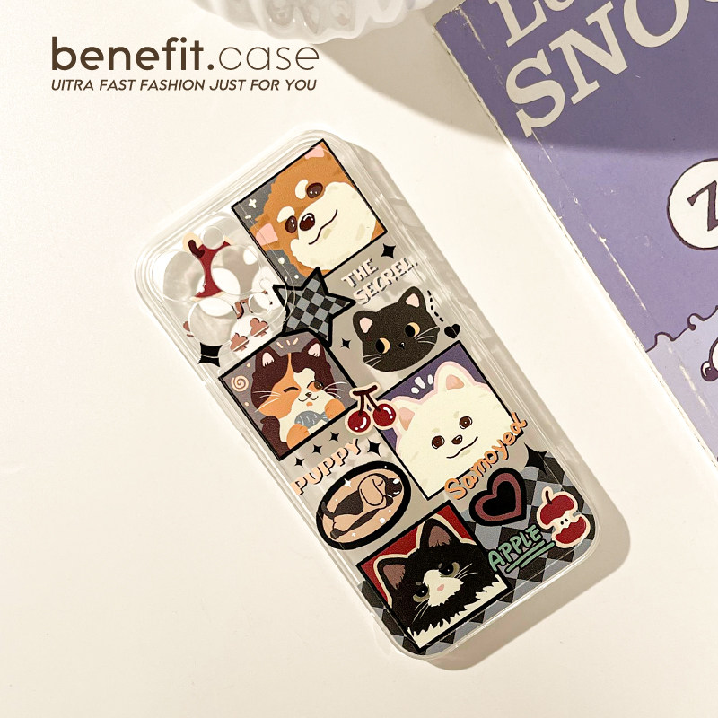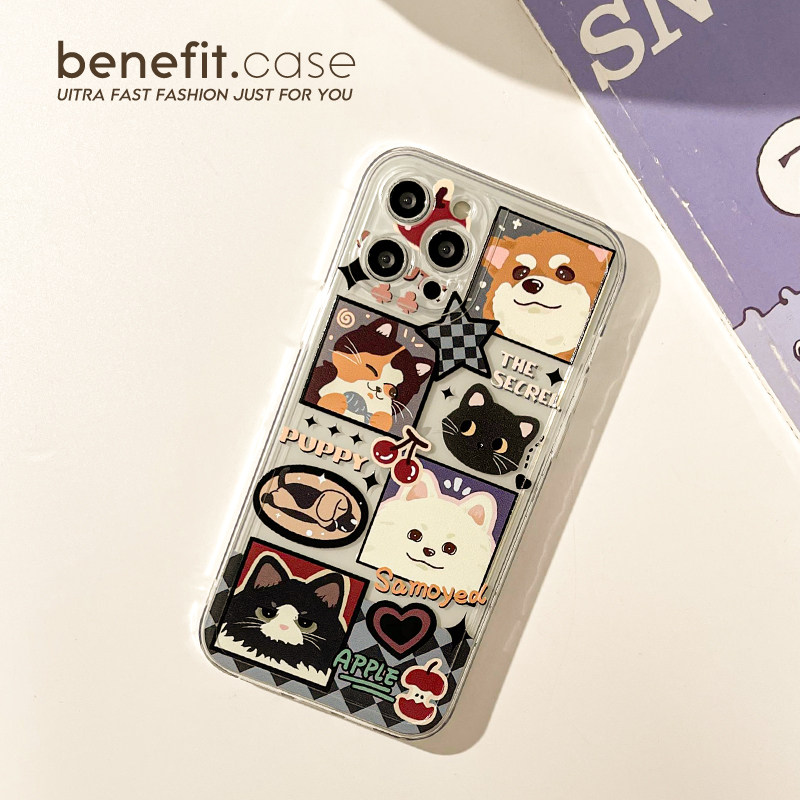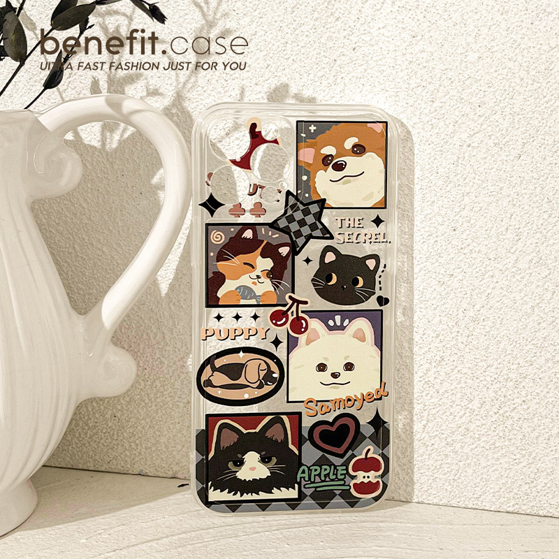 benefit可爱复古猫狗插画17适用于iphone16promax苹果15PRO手机壳13新款 14套12创意11透明xsmax硅胶xr防摔8p