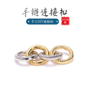 S925银链接圈条纹弹簧扣锁扣圆环扣项链手链链接扣光面按压扣百搭