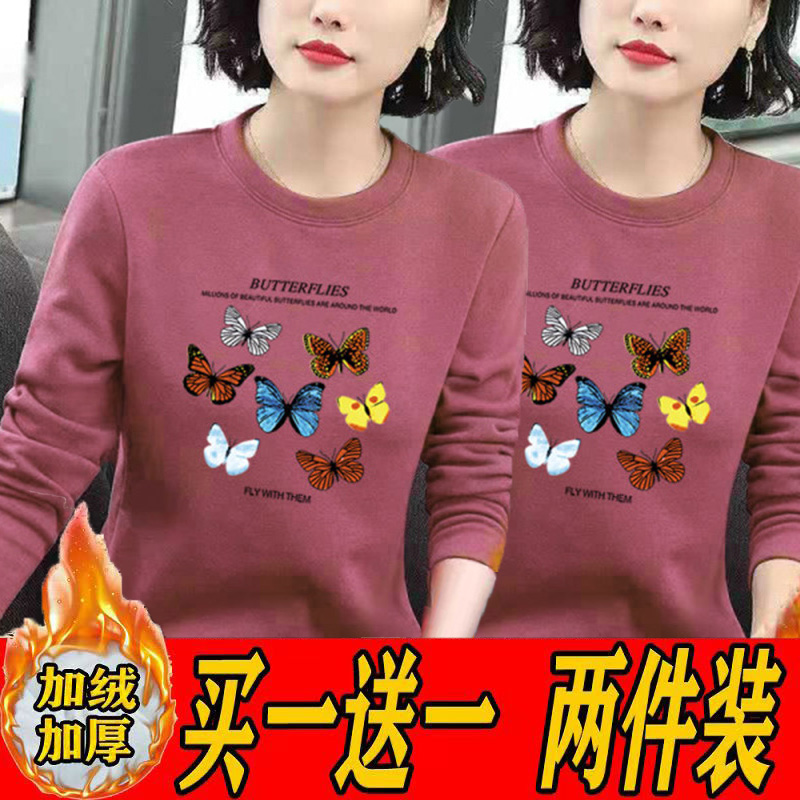 保暖长袖 新款 宽松大码 女士秋冬内搭妈妈装 T恤上衣 加绒加厚打底衫