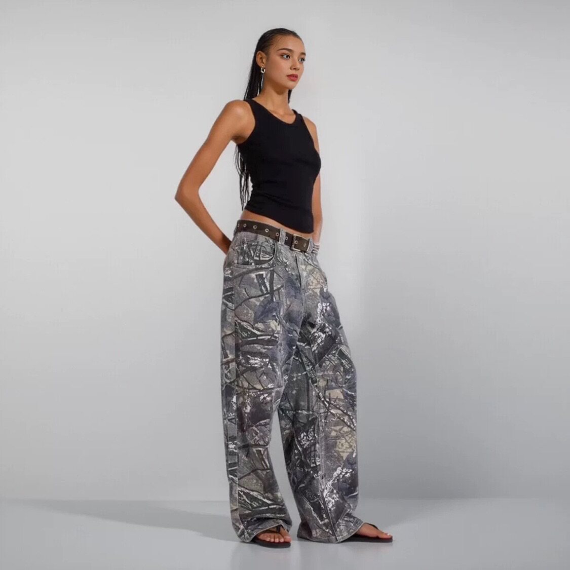 长裤 London复古水洗树枝纹迷彩宽松直筒休闲裤 Jaded IAMUBABA新款