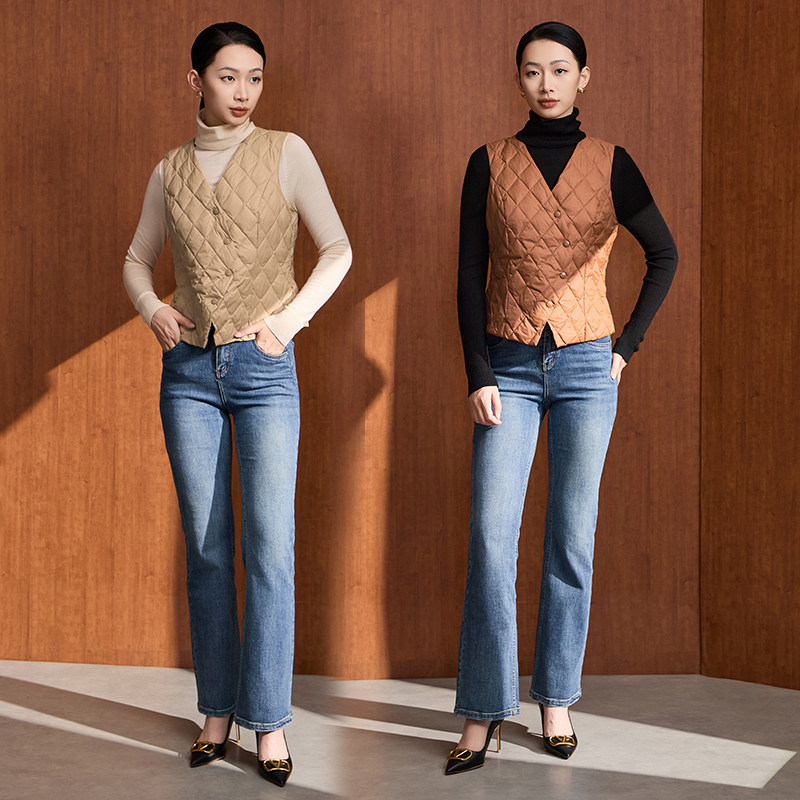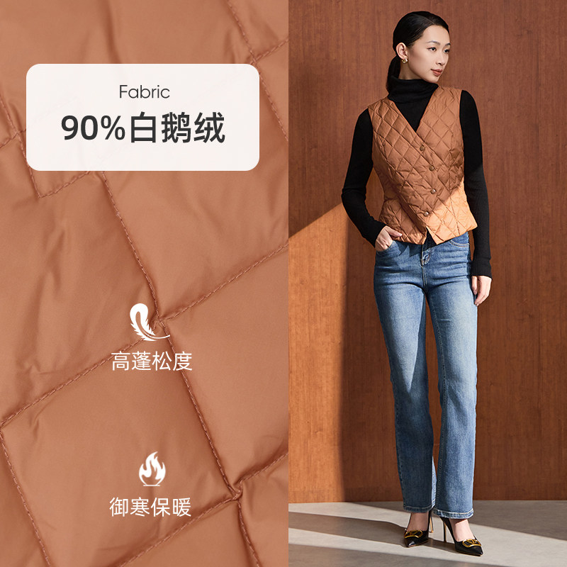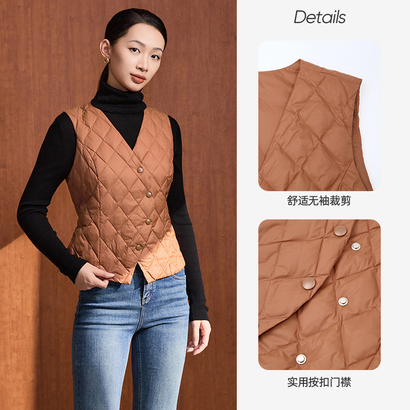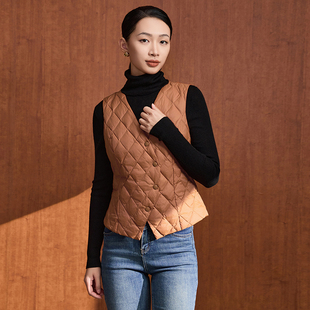 休闲 百搭时尚 马天奴女新款 纯色90%白鹅绒V领羽绒马甲背心内搭修身