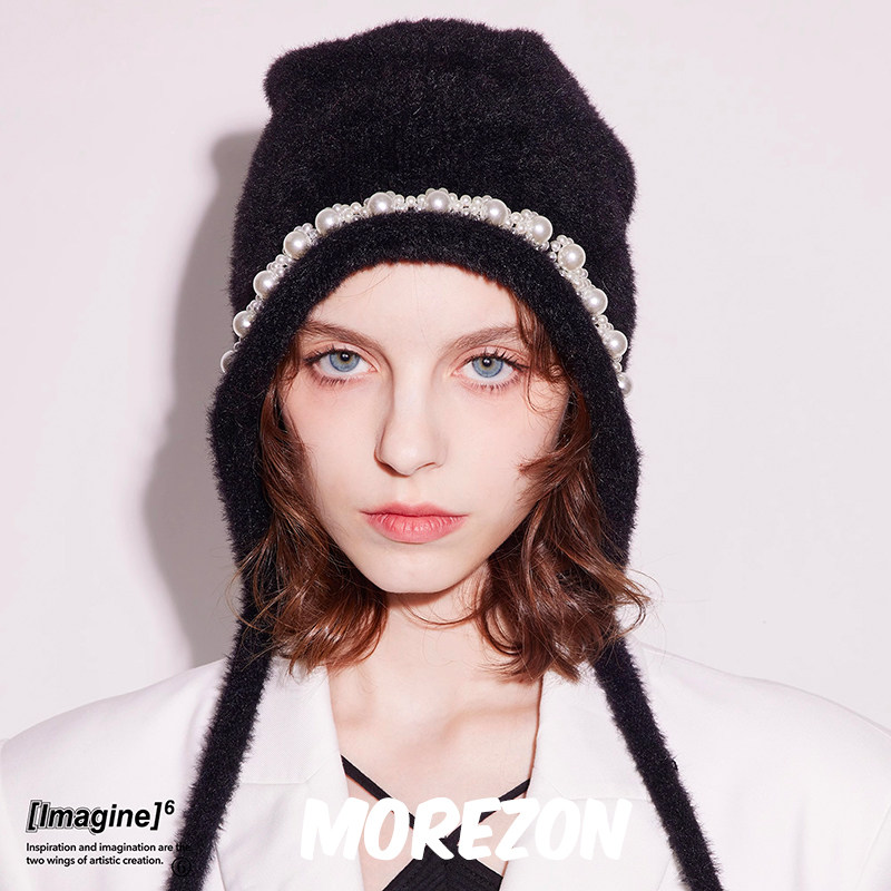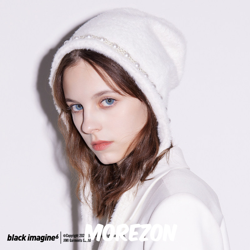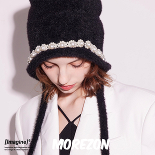 2025新款 日系可爱兔耳朵仿貂毛毛线帽子女秋冬保暖百搭学生针织帽