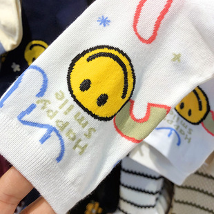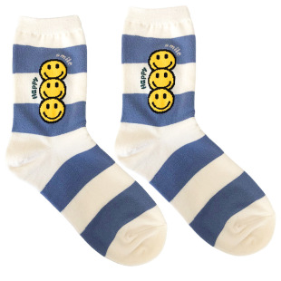 可爱笑脸女生棉袜潮字母百搭中筒 韩国袜子kikiya秋冬新款 现货