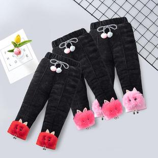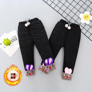 弹力宽松拖地裤 加绒加厚新款 子 女2025冬季 白色国潮刺绣阔腿牛仔裤