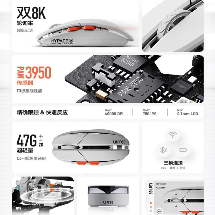 洛斐薯片鼠标无线蓝牙女生高颜值苹果笔记本电脑办公充电款