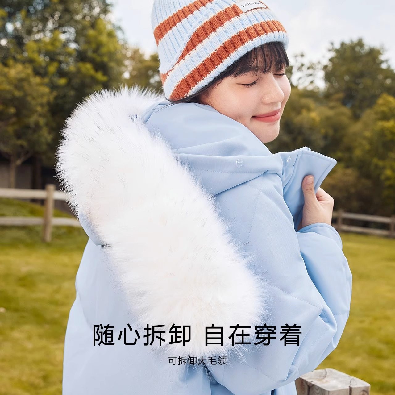 宽松加厚外套正品 新款 毛领连帽保暖小个子冬季 森马羽绒服女中长款