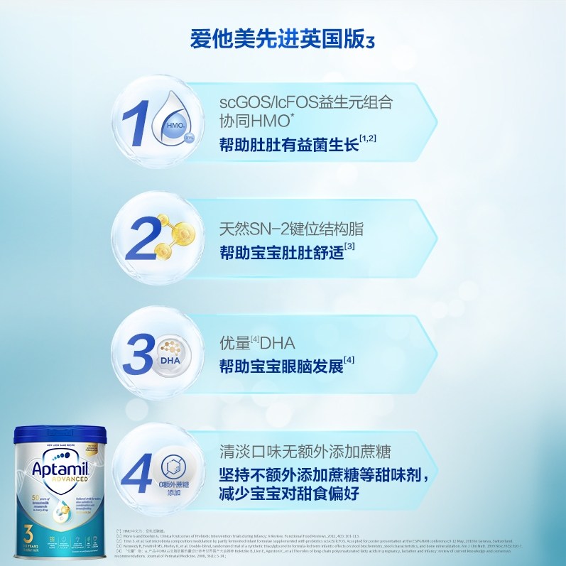 12罐装 爱他美先进英国版 3岁800g 婴儿配方奶粉3阶段1 白金升级版
