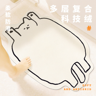 北欧现代可爱猫咪洗澡防滑地垫宠物家用卫浴吸水软硅藻泥浴室厕所
