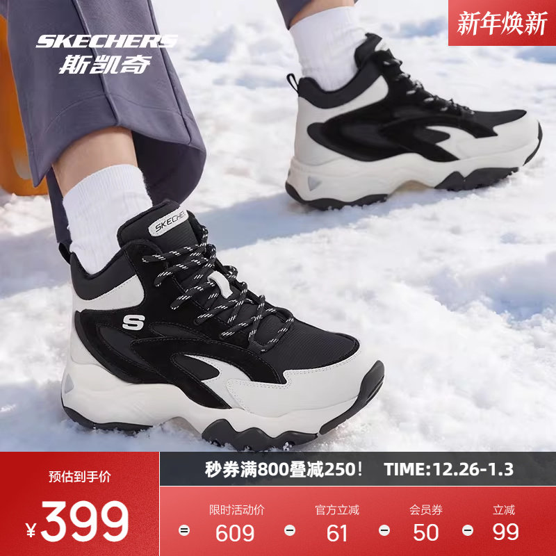 舒适加绒保暖高帮老爹鞋 斯凯奇秋冬女款 潮流休闲厚底熊猫鞋 时尚 鞋